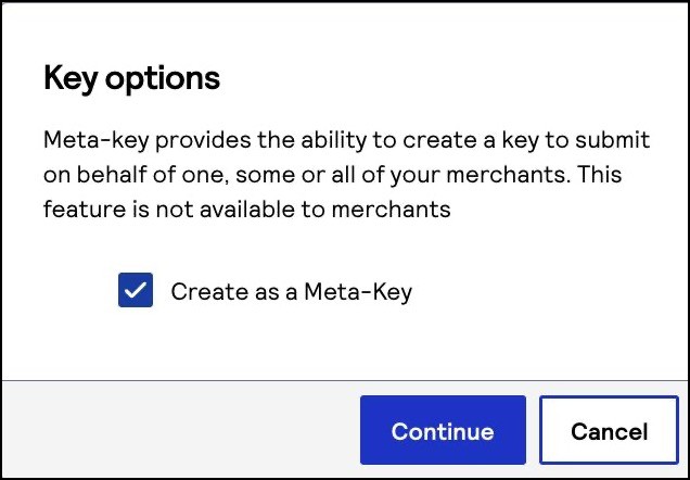 This section describes how to create a meta key as a merchant account user in the